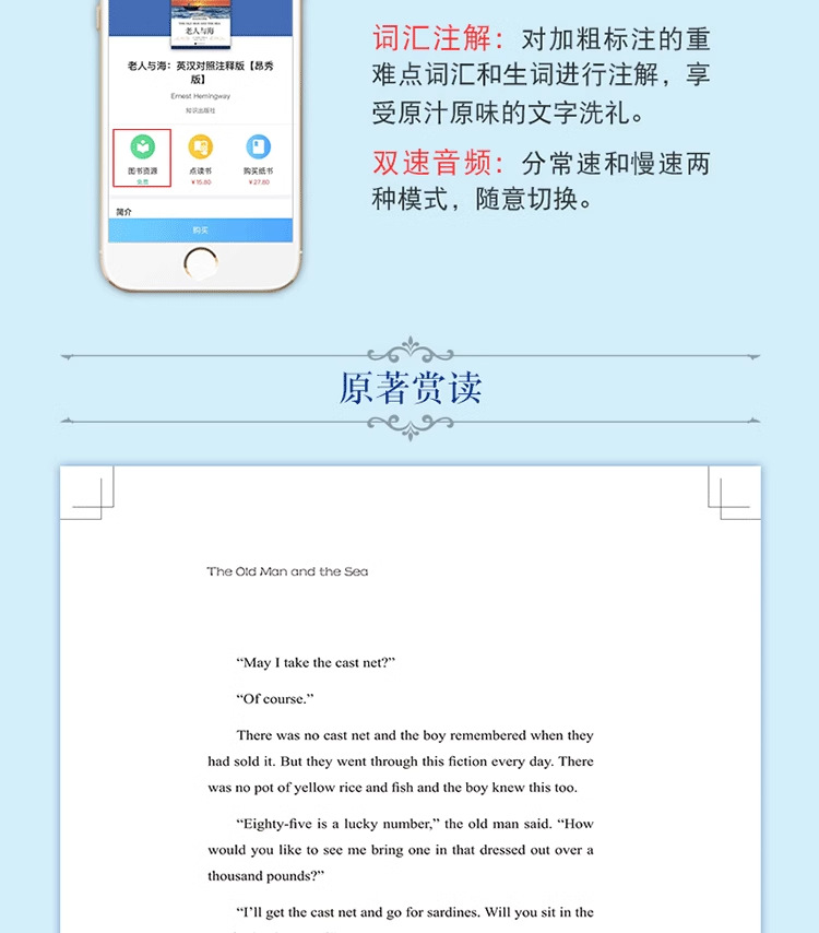 The original bilingual edition of The Old Man and the Sea is a must-read for every literature enthusiast and English learner, guiding readers through Hemingway's literary charm and philosophical reflections.