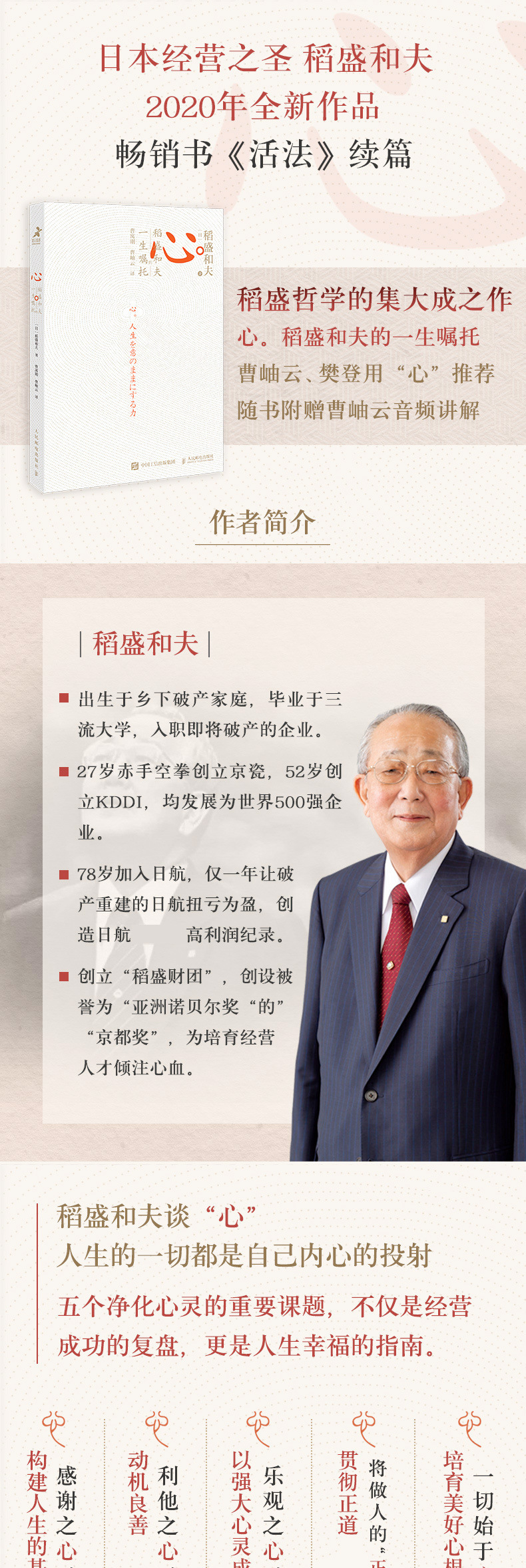 The Way of Living + The Way of Doing + The Way of the Heart is a collection of classic works by renowned Japanese entrepreneur Kazuo Inamori, featuring The Way of Living, The Way of Doing, and The Way of the Heart. These three books encapsulate Inamori's profound insights into life, work, and management, sharing his wisdom and philosophy in business and life, aiming to inspire readers to pursue a higher quality of life and career success.