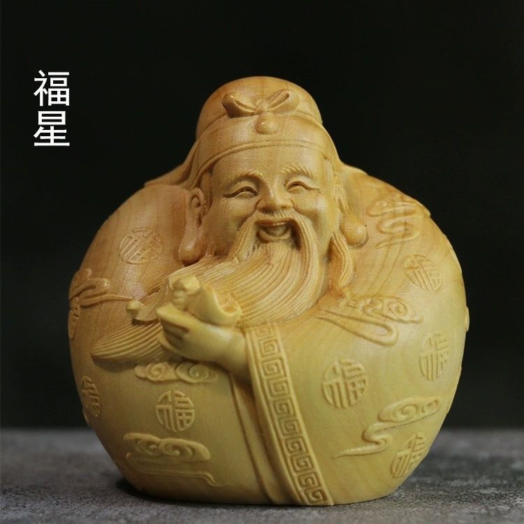 Product Description: This charming set of miniature Fu Lu Shou figurines is intricately carved from high-quality Yunnan cypress and boxwood. These three star deities—Fu (Prosperity), Lu (Official Position), and Shou (Longevity)—are symbols of good fortune, success, and long life in Chinese culture. The Q-version design adds a playful, cute twist to the traditional representation, making them a perfect addition to any desk, tabletop, or display.