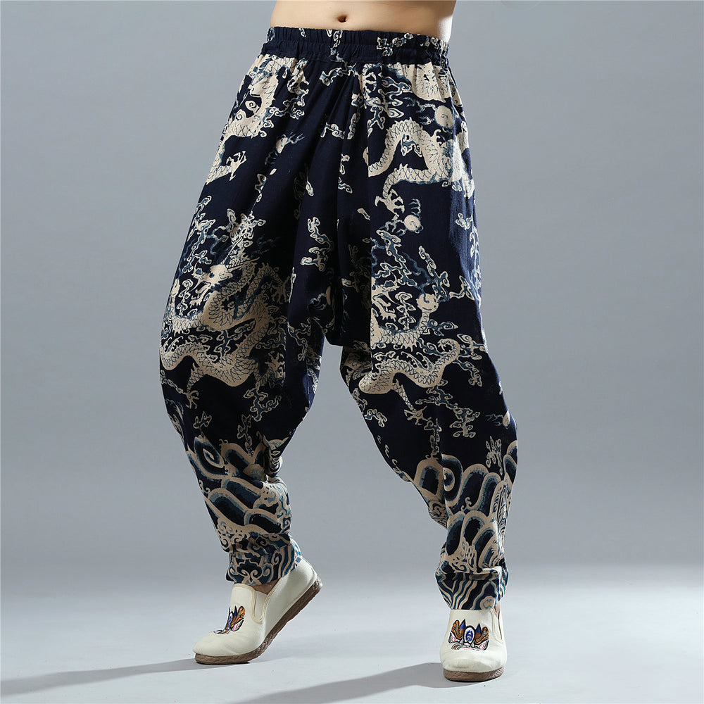 2024 New Ethnic-Style Men’s Pants | Loose-Fit Lantern Pants with Dragon Print