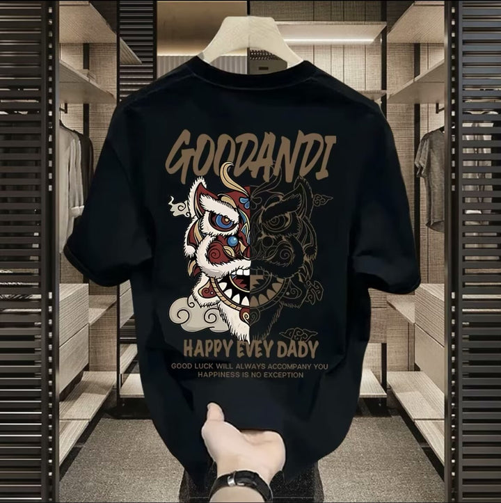 2024 Summer New National Tide Awakening Lion T-Shirt – Men’s Trendy Cotton Short Sleeve