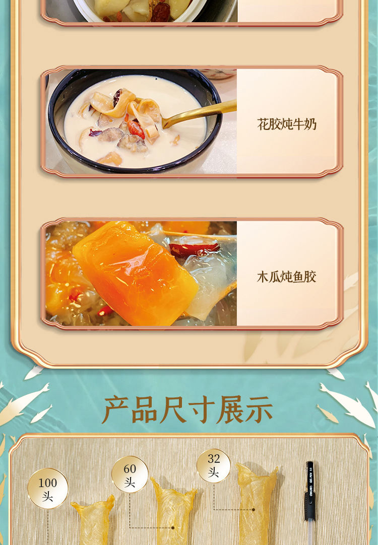 Indulge in the Premium Dried Fish Maw, featuring yellow flower tube fish maw known for its superior quality and low fishy odor. This carefully processed seafood delicacy is fully dried and rich in collagen, making it ideal for pregnant women, health-conscious individuals, and gourmet enthusiasts. Suitable for a variety of culinary uses, this fish maw is a perfect addition to your diet or a thoughtful gift for loved ones.