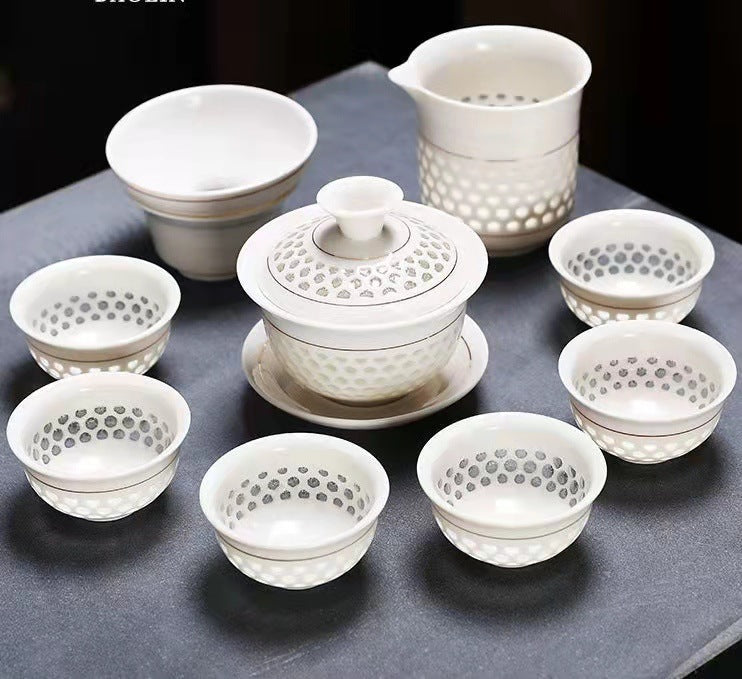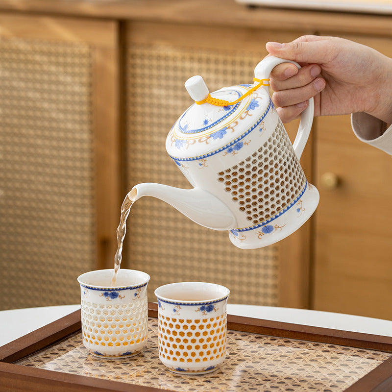 Linglong Porcelain, a hallmark of traditional Chinese craftsmanship, is famous for its distinctive "Linglong eyes" design. Originating from Jingdezhen during the Ming Dynasty, this porcelain is created using a unique "piercing and carving" technique, forming semi-transparent holes that allow light to pass through. These “Linglong eyes” often appear as delicate mesh or pattern shapes, lending the porcelain an elegant, translucent look. After glazing and high-temperature firing, Linglong Porcelain achieves a jade-like smoothness, balancing both utility and aesthetics, and is often regarded as the "pearl among porcelains.