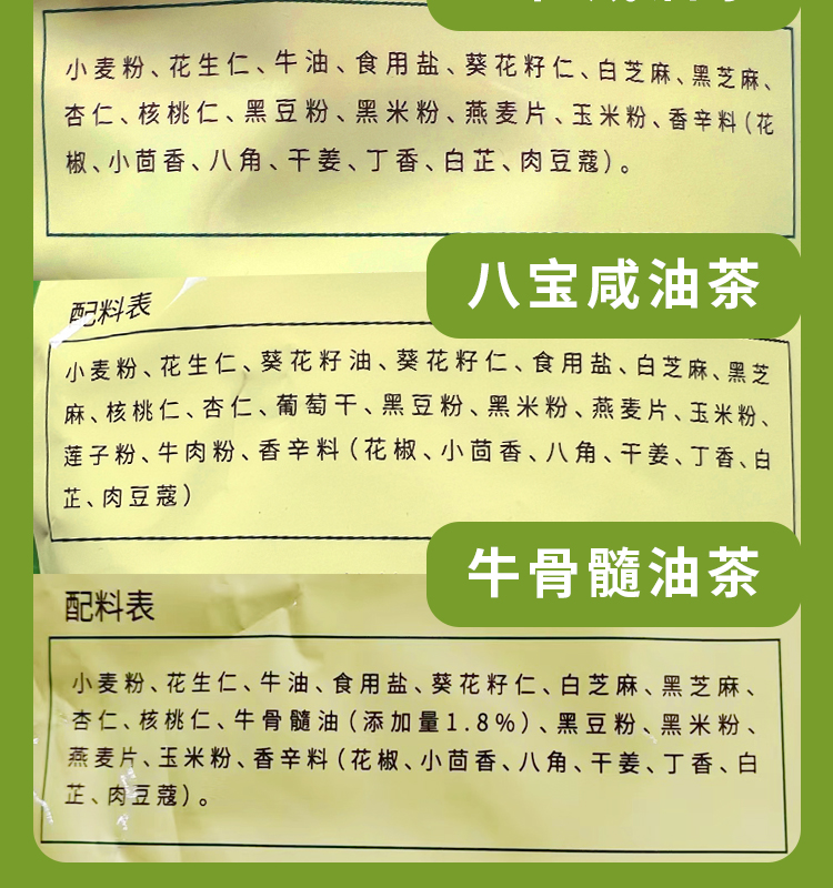 • Type: Traditional Oil Tea, Fried Noodles, Five-Nuts Salted Oil Tea.