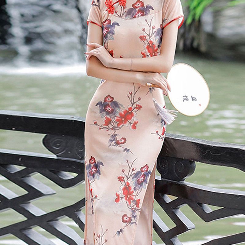 Vestido cheongsam largo de verano 2025: cheongsam ajustado de doble capa de inspiración retro (tallas grandes disponibles)