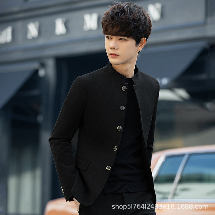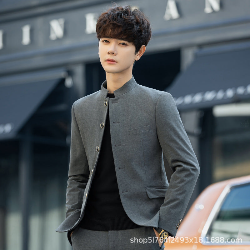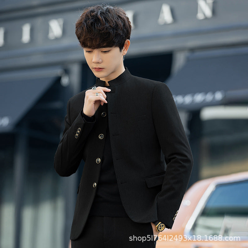 Traje Zhongshan de estilo chino A79 para hombre: chaqueta de traje Tang juvenil de alto rendimiento y corte entallado.