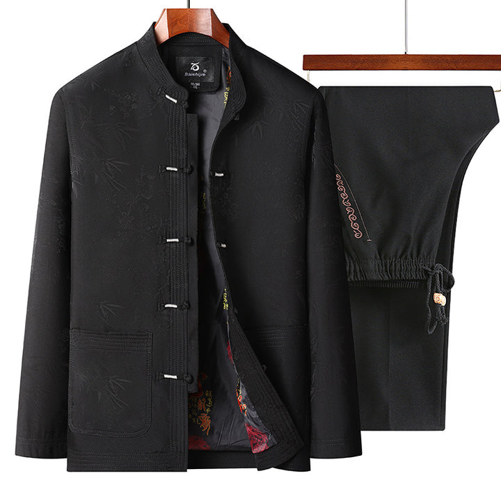 Traje Tang de otoño e invierno para hombre | Chaqueta de algodón para abuelos mayores | Abrigo polar grueso retro | Conjunto Hanfu para papá