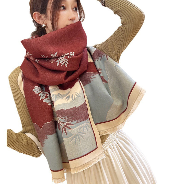 Envuélvete en la elegancia de esta bufanda de cachemira sintética de estilo chino, con exquisitos estampados de paisajes con lavado de tinta. Inspirada en el arte tradicional chino, esta bufanda combina sofisticación cultural con funcionalidad moderna. Su tejido grueso y suave proporciona una calidez lujosa durante los fríos meses de otoño e invierno, mientras que su diseño versátil la hace perfecta como bufanda o chal. Su artesanía de primera calidad garantiza una estética sofisticada, convirtiéndola en una pieza destacada para ocasiones informales o formales.