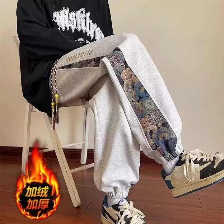 Pantalones deportivos con puños bordados de oso para hombre | Novedad otoño 2023 | Moda estilo chino | Tallas grandes | Pantalones deportivos casuales holgados