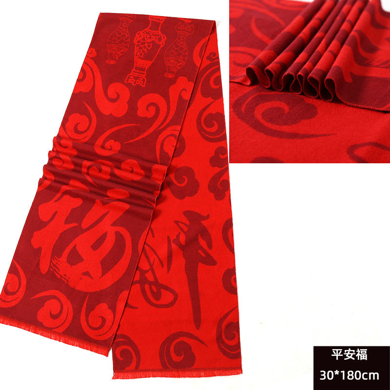 Celebre con estilo y tradición con esta elegante bufanda roja con un hermoso motivo bordado "福" (Bendición). Perfecta para fiestas corporativas de fin de año, ocasiones festivas y como regalo memorable, esta bufanda combina armoniosamente simbolismo cultural y calidez funcional. Su vibrante color rojo simboliza prosperidad y alegría, ideal para crear un ambiente festivo y estimulante. Elaborada con materiales de alta calidad, esta bufanda no solo representa buena fortuna, sino que también ofrece comodidad y durabilidad.