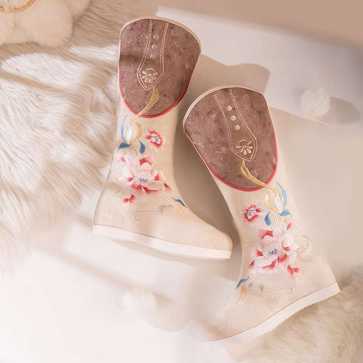 Botas largas bordadas de estilo chino para mujer (2025): botas Hanfu de invierno que realzan la estatura