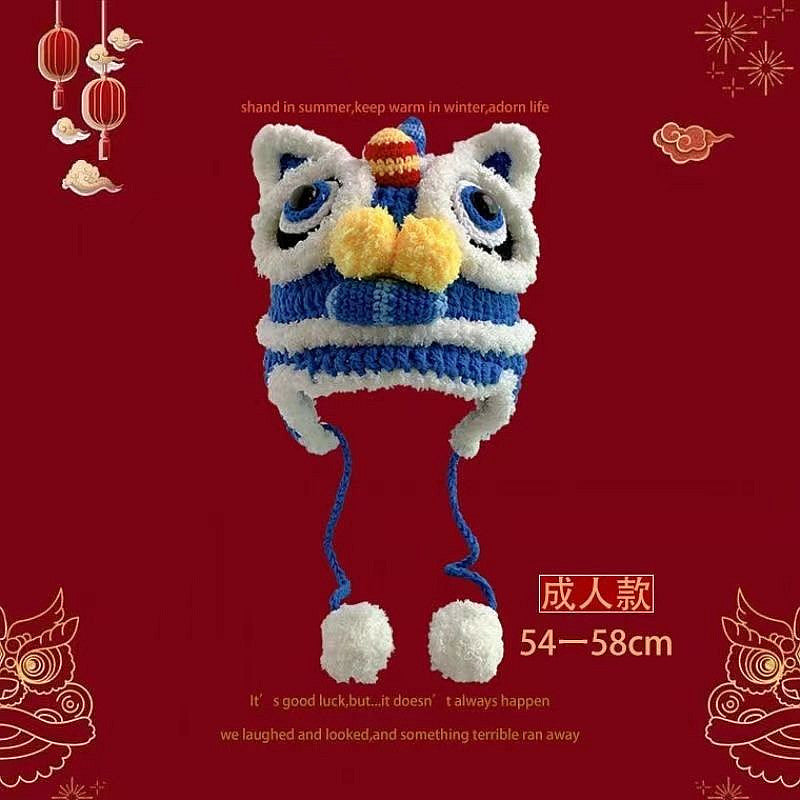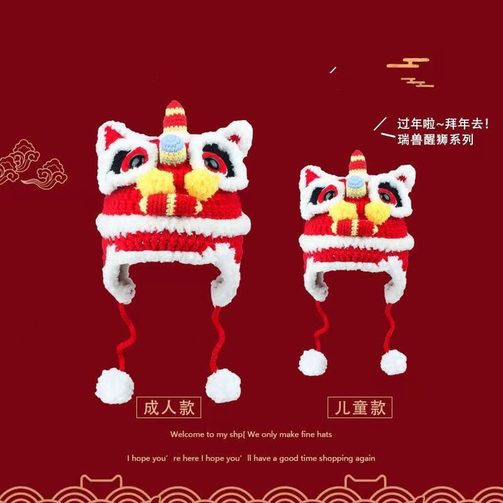 Gorro de cabeza de tigre para padres e hijos, tejido a mano, estilo chino. Tendencia nacional. Bonito gorro de punto cálido para la danza del león en invierno. Gorro del despertar del león.