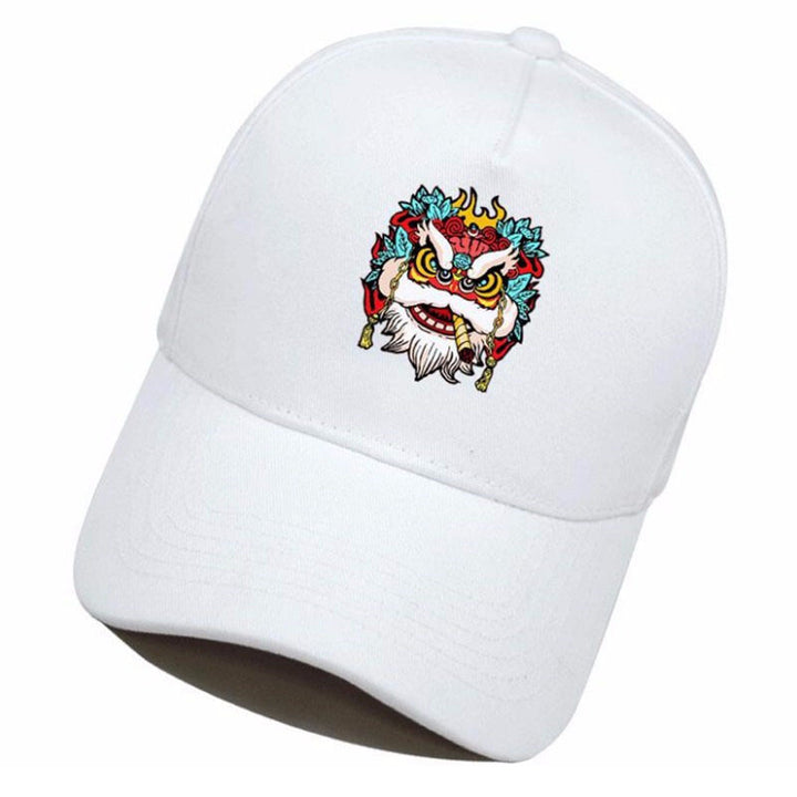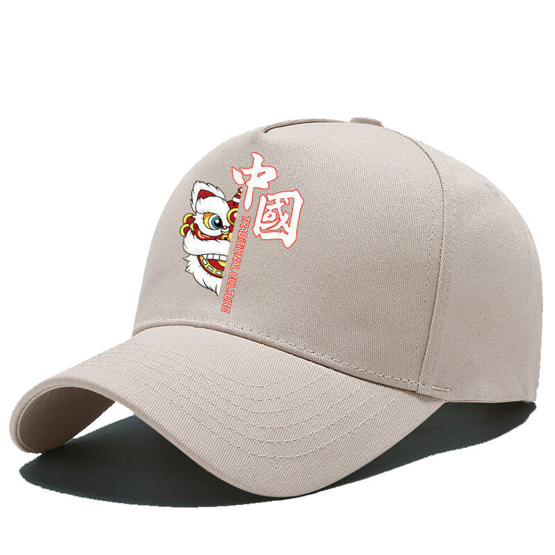 - Bordado de danza del león: el llamativo diseño de danza del león simboliza fuerza y prosperidad, lo que le da a esta gorra un toque cultural único.