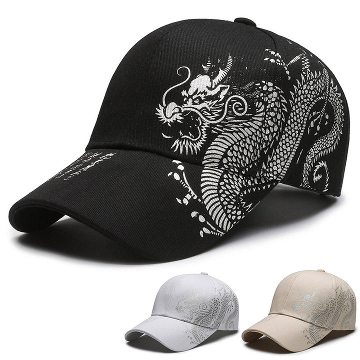 Gorra de béisbol unisex con estampado de dragón: gorra artística de ala dura estilo chino para primavera y otoño.
