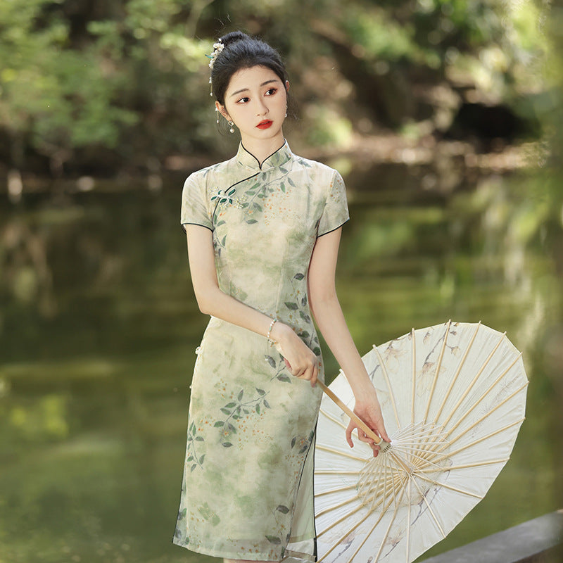 Corte cheongsam (qipao) mejorado con mangas cortas o mangas cortas (según el estilo)