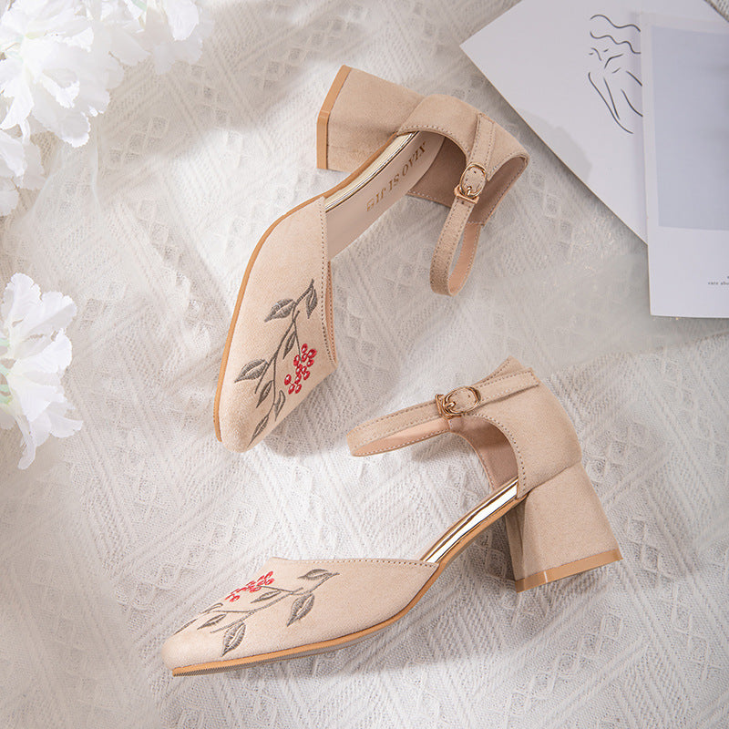 Añade un toque atemporal de elegancia oriental a tu armario de primavera y verano con estos zapatos Mary Jane de tacón alto bordados Yuandai . Inspiradas en la artesanía tradicional china y diseñadas para la mujer moderna, estas sandalias presentan un bordado exquisito, un diseño de punta cuadrada y una tira Mary Jane retro , combinando el encanto nacional con la comodidad y la elegancia.