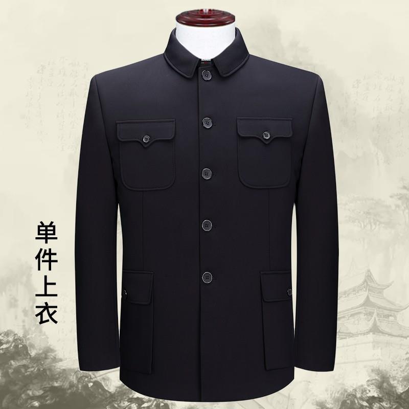 Diseño : Estilo Zhongshan tradicional de cuatro bolsillos con hombros estructurados y cuello alto.