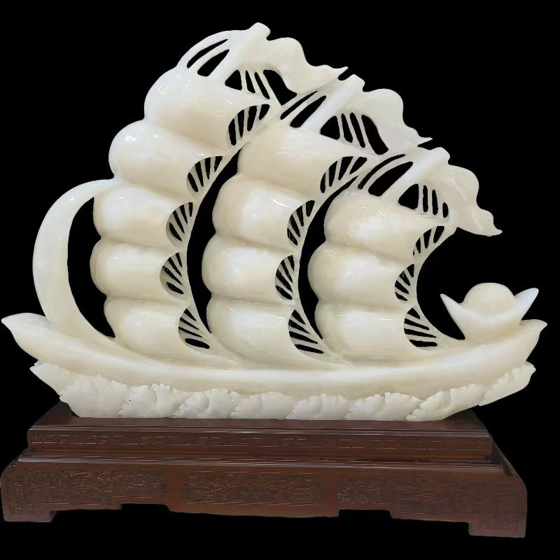 这款天然玉石帆船摆件不仅仅是一件装饰品,更是成功、繁荣和一帆风顺的象征。它完美融合了文化传统与永恒之美,是提升空间格调或馈赠好运的理想之选。